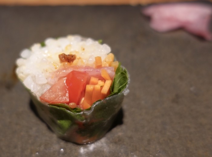 変わり種。ライスペーパーでシャリを包んだエスニック寿司。