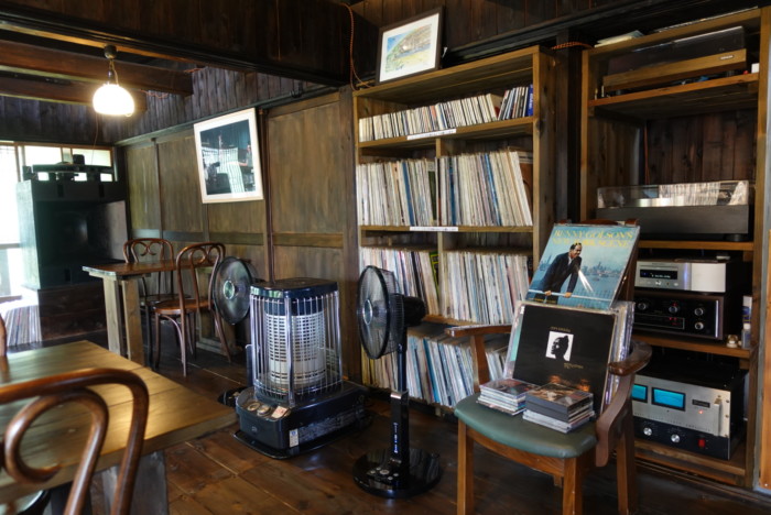 数多くのレコード、CDがディスプレイされ、重厚感の中になぜかほっとできる安心感があります。