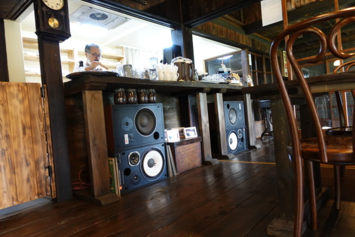 立派なスピーカー、たくさんの音響設備が並びます。わたしは音楽に関しても全くの素人。知識はありませんが、店内で流れるJazzの音がレトロな店内をさらに素敵な空間にしていたように感じました。