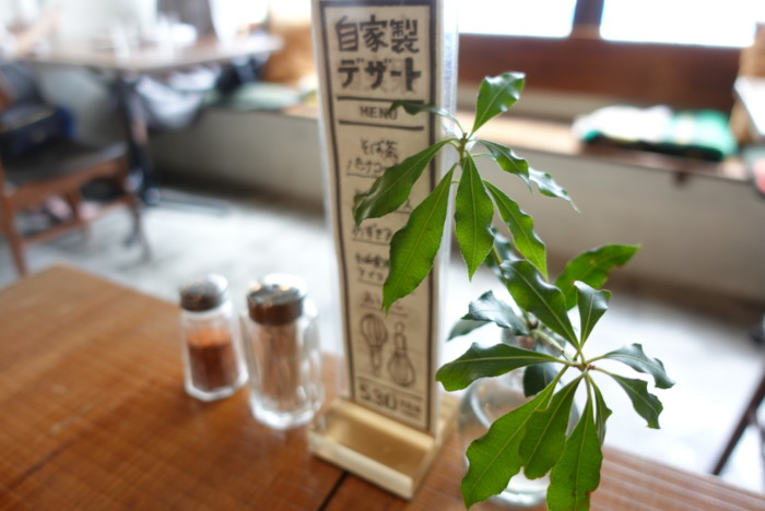 テーブルには緑。そしてそそられる自家製デザートの文字。しかしわたしは知っているのです。ランチのボリュームを。
