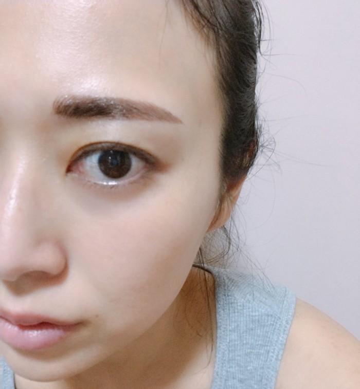 眉毛を色で塗りつぶす仕上がりです。眉頭はよく見てもらうとわかるように毛のように線で入れてもらっています。これが3Dアートメイクです。