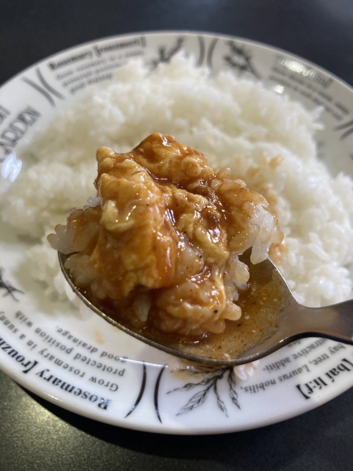 わたしはどちらかと言えば薄味好きなので、オムレツとデミグラスソースをバランスよく取り、ご飯と一緒に食べました♡