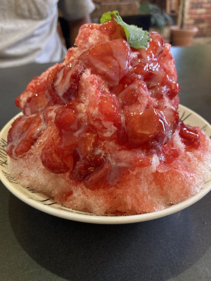そしてミントが夏に出しているかき氷。これが有名のようです。今回はスペシャルイチゴを注文(700円)