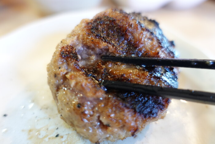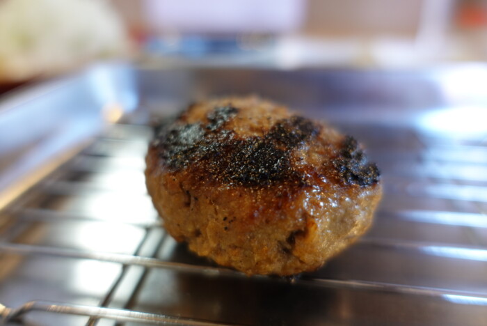 ひとつ80gのハンバーグ。表面はカリと香ばしい。