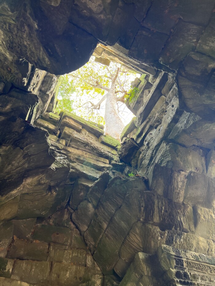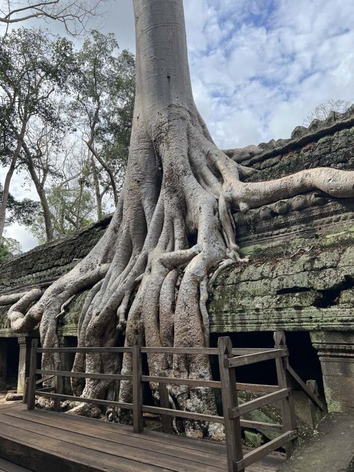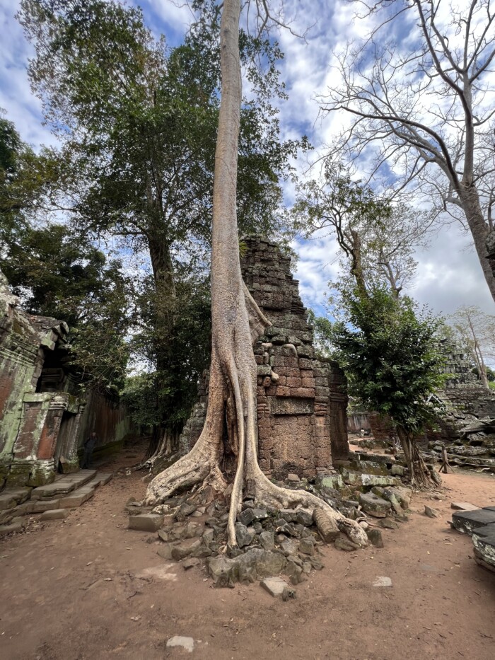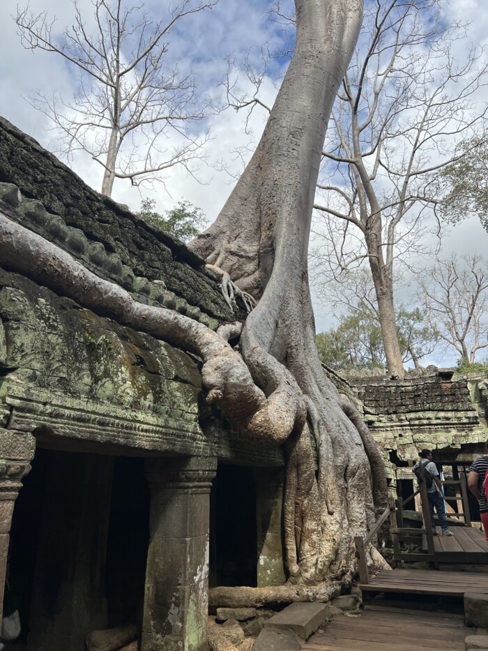 このタプローム寺院は木が遺跡に絡まっているのが有名で、いつ自然に破壊されてもおかしくないと言われています。改修工事も進んでいますが、原型を留めている間に観に行くのがオススメです。本当に感動しますよ!!