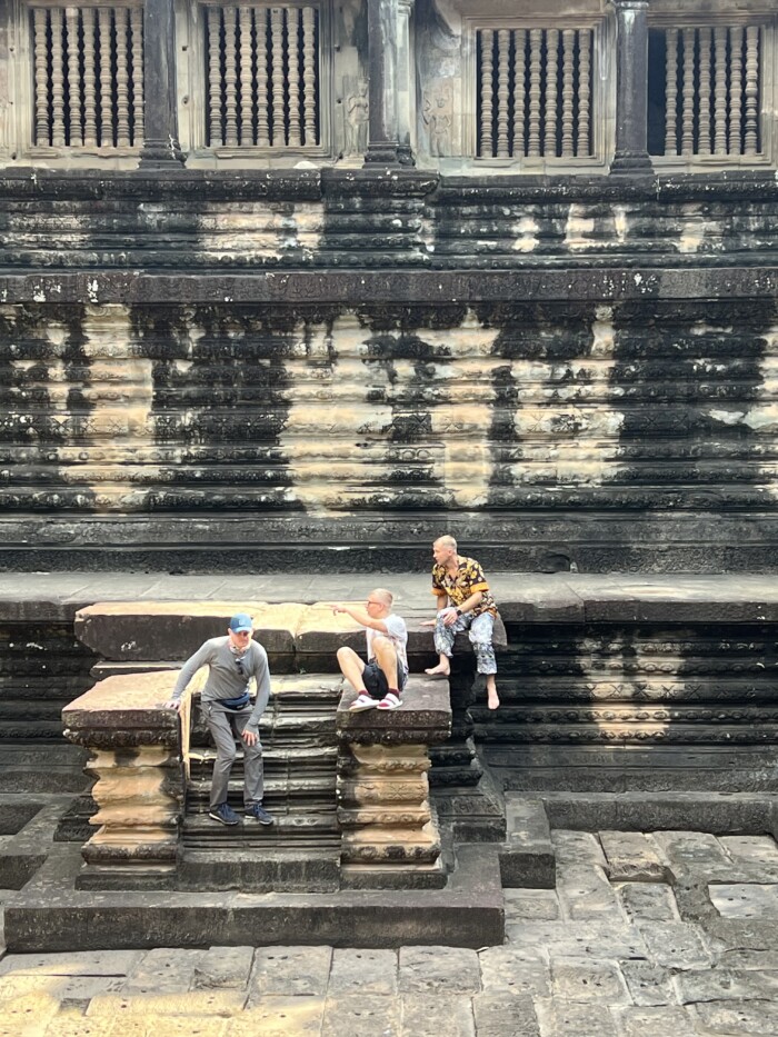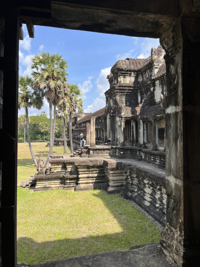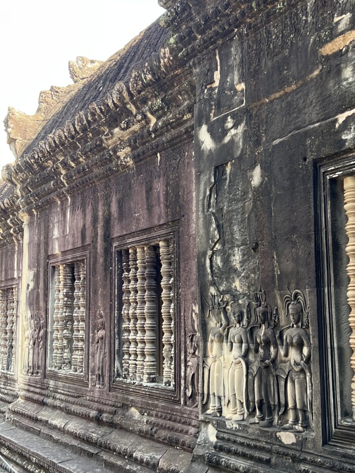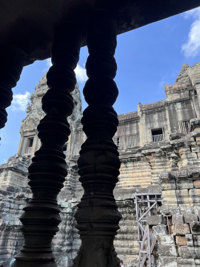 この独特な形の柱、たくさん出てきます。我々観光客が歩いている地面は、アンコール王朝時代は水が張られていて、上空から見ると、水にこの柱が反射し、波打って見えるように設計されたんだそう。(美観センスまで抜群だったんかい。と思わずにはいられません!)