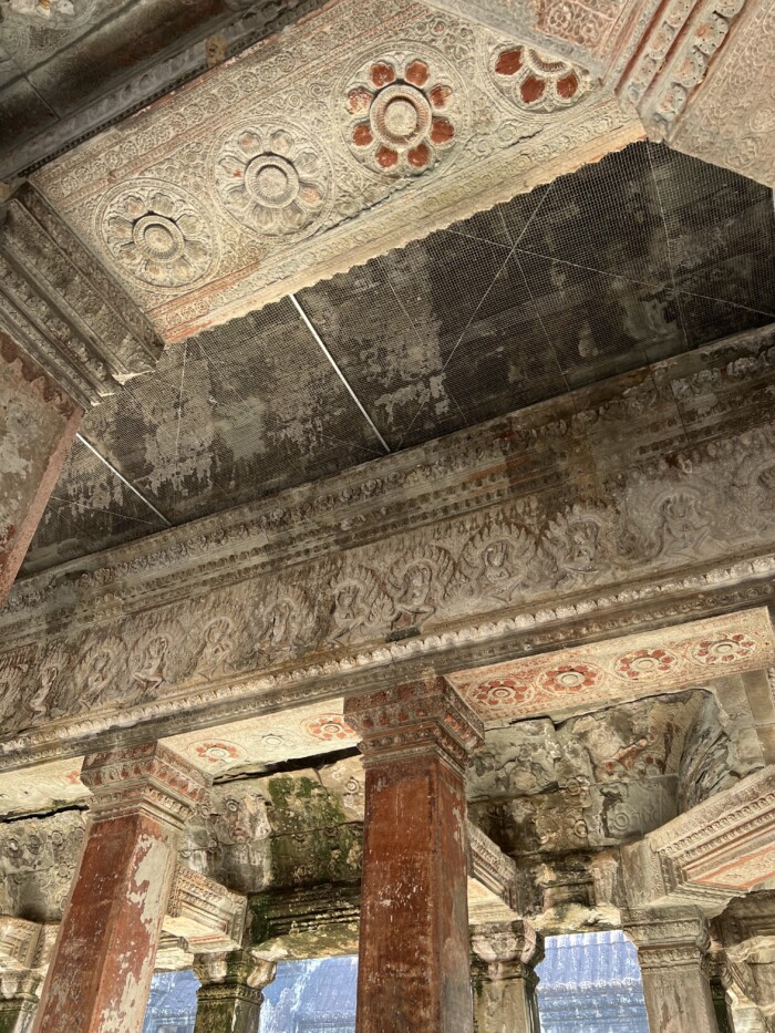 この赤茶色の色は漆で塗られているんだそうな。当時はもっと鮮やかな色がふんだんに使われていたことが想像できます。
