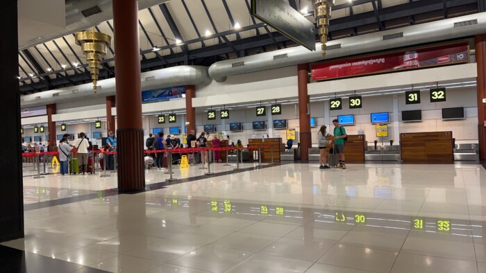 30分ほどで空港に到着。1月のカンボジア(シェムリアップ)は人が少なかったです。チェックインの時に陰性証明を提示します。
