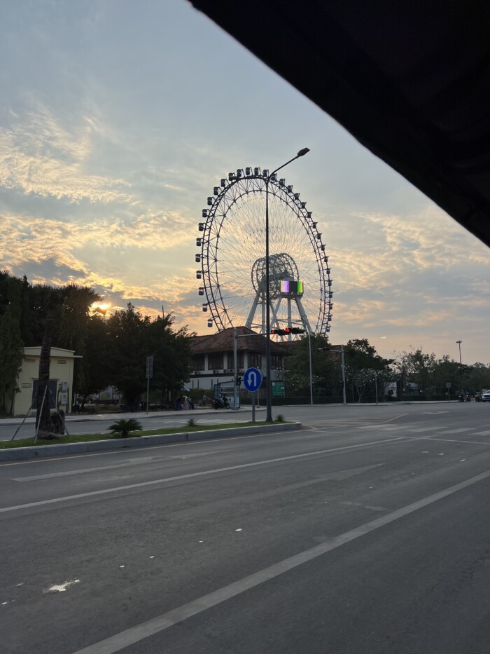 この観覧車は日本から運んできたものなんだそう。つながりがあることが嬉しい。ちなみに陽が落ちると涼しくなるので、トゥクトゥクに乗る時は上着必須。